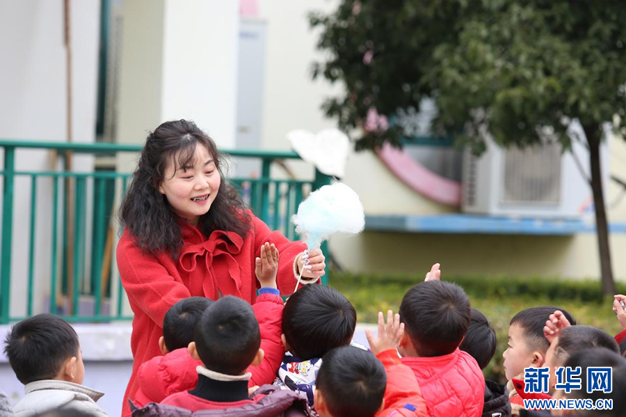 老师和小朋友们一起制作棉花糖。新华网发 韩海建 摄