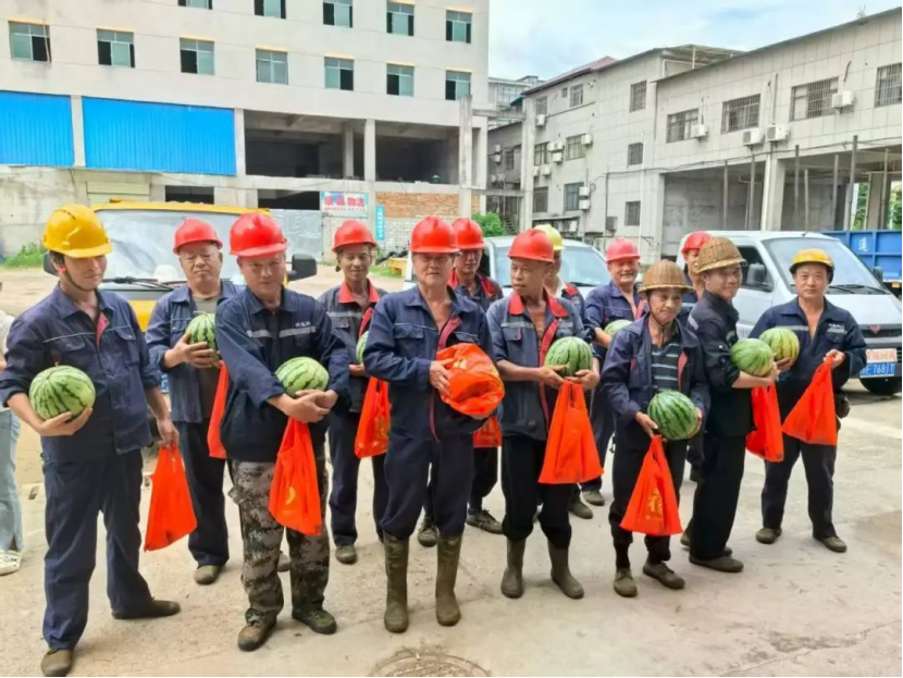 李师傅抹了把汗,接过礼包和西瓜,看着眼前忙碌的“红马甲”,声音有些激动:“哎呀,真是谢谢你们!这么热的天,你们还专门为我们服务,心暖呀!”他喝了一大口绿豆汤,冰凉的甜意瞬间驱散了喉间的燥热,他笑着说:“这碗汤下去,感觉身上又有劲儿了,下午的活儿都不觉得累了!”朴实的笑容和话语,道出了许多高温工作者的心声。