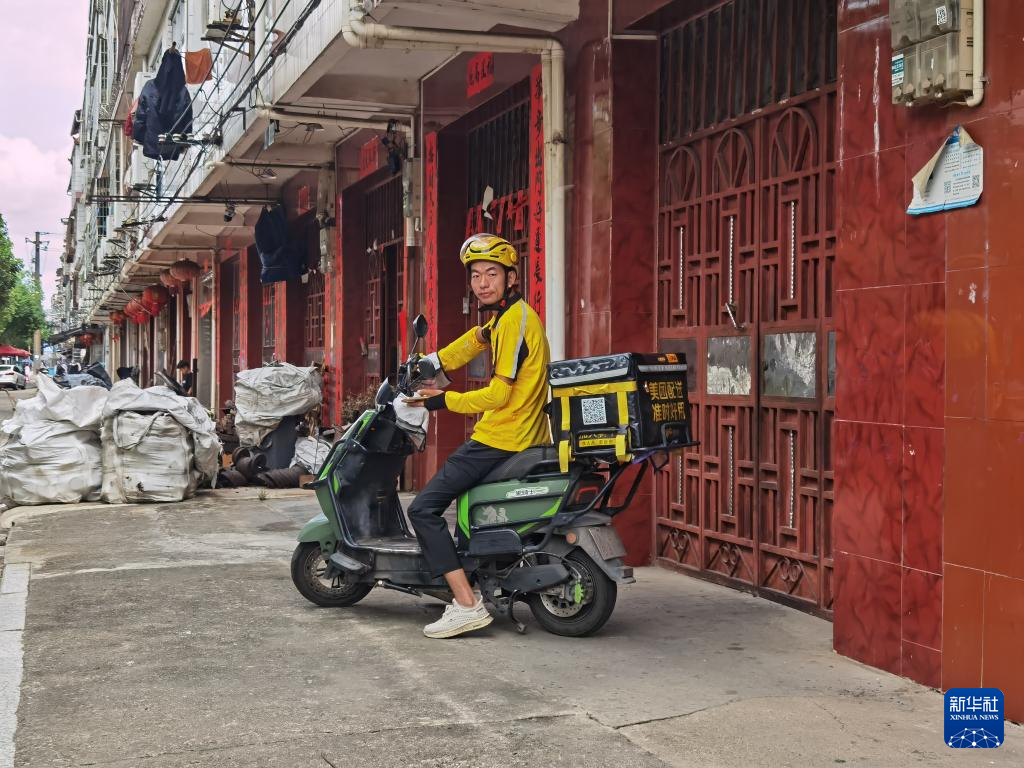 新华社南昌8月16日电(记者陈浚武)在江西瑞金的街头巷尾,一名外卖骑手身着黄色工装,奔波在店铺楼宇间,这是陈一文作为一名普通外卖小哥的日常。