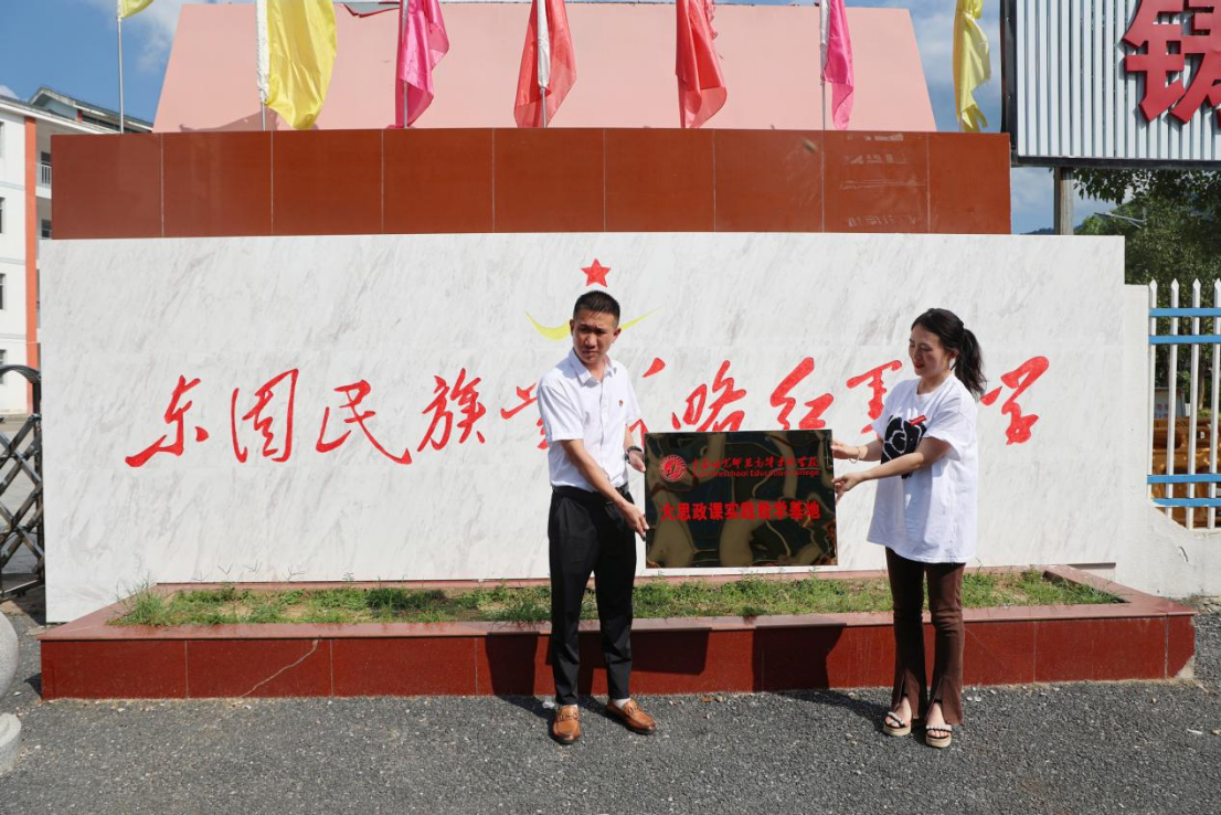 当天,吉安幼专在东固民族黄公略红军小学举行了大思政课教学基地挂牌仪式,吉安幼专宣传部负责人郭黎黎、东固黄公略红军小学副校长郑万伟代表双方学校为基地揭牌。此次大思政课教学基地的建立是吉安幼专探索思政教育新模式、深化思政课改革的重要举措,为推动大中小思政课一体化建立了有效的实践平台。吉安幼专将用好用活实践教育基地,探索建立纵向贯通(小学-中学-高校)的思政教育一体化育人体系,挖掘东固红色文化、非遗文化等本土资源,形成可转化、可复制的课程资源和教学模式。