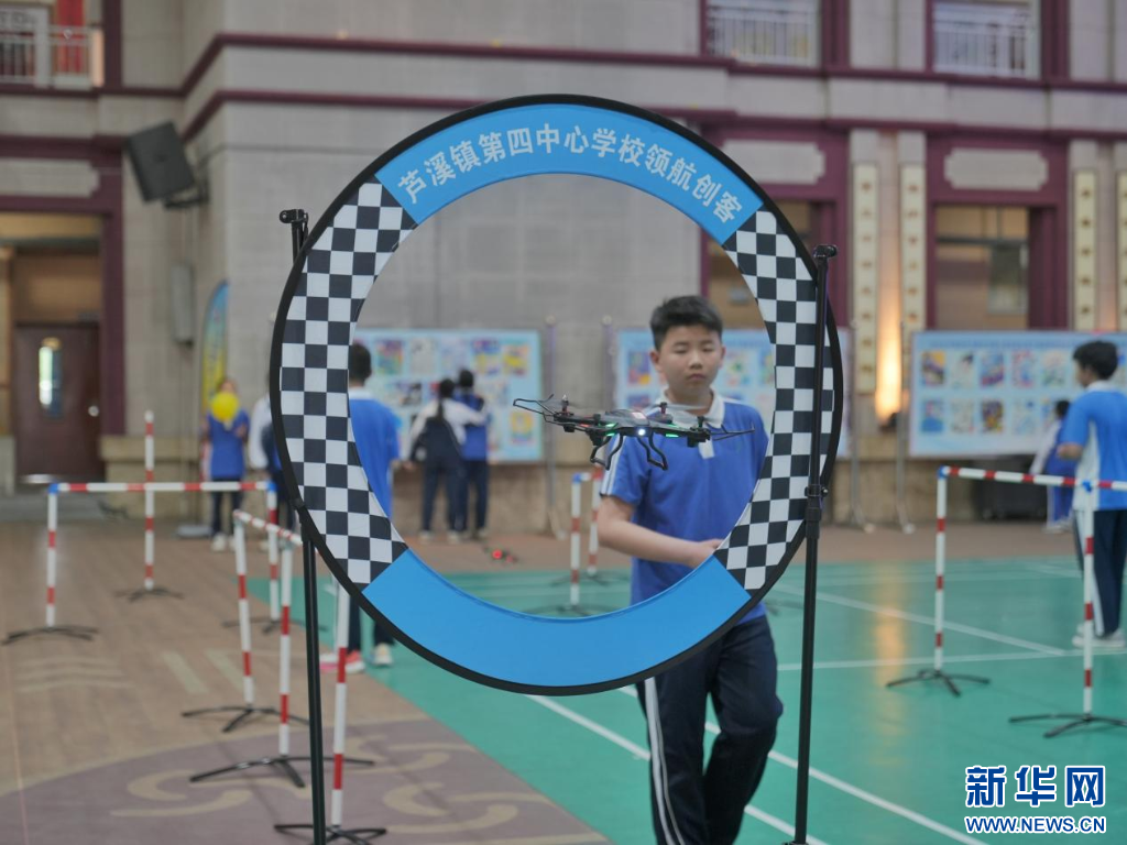 芦溪镇第四中心学校无人机竞赛项目比赛现场。新华网发 王强 摄