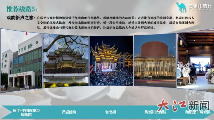 线路5:戏韵新声之旅。前往乐平古戏台博物馆,读懂千年戏曲传承脉络,观赏赣剧傩戏的古韵风采;走进洪岩仙境,在溶洞奇观中邂逅自然与人文交织的沉浸式演出;漫步老北街明清街巷,聆听街头戏韵,感受市井烟火里的戏曲温度;最终在陶溪川大剧院,欣赏传统戏曲与现代舞台技术的碰撞融合,见证戏韵在瓷都古今对话中鲜活延续。(吴晓燕)