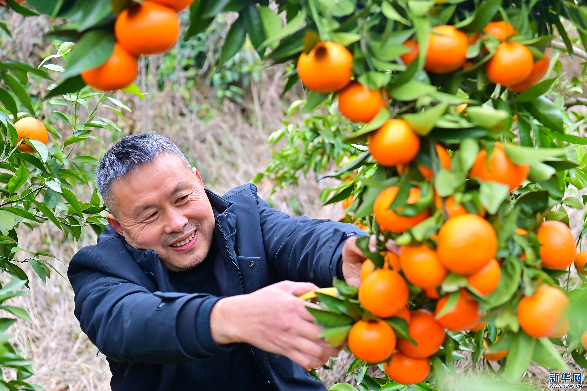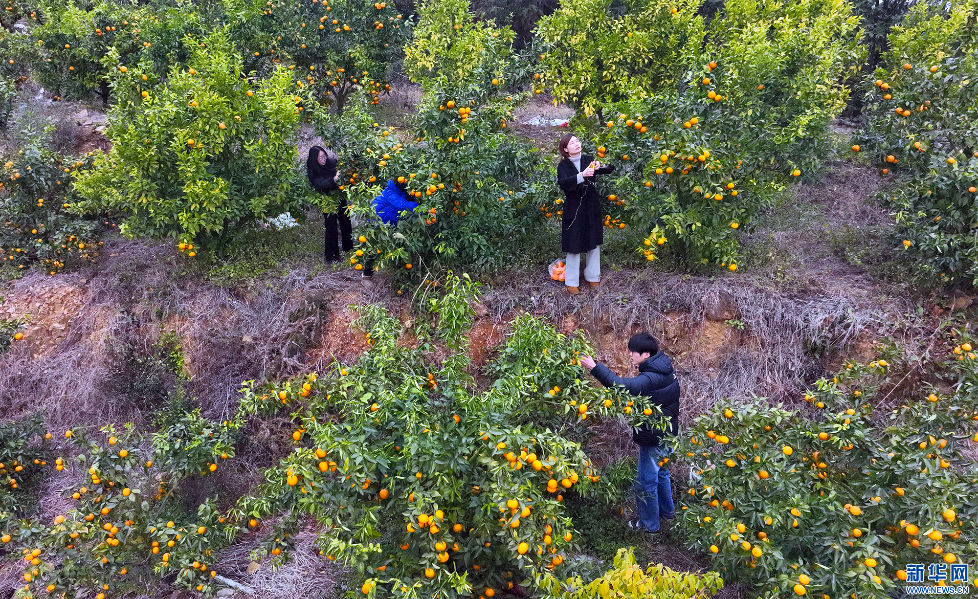 村民在果林里采摘晚熟沃柑。新华网发 邓龙华 摄