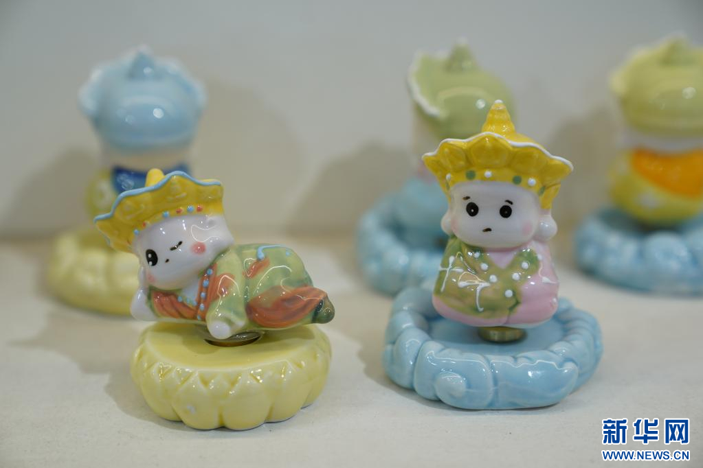 这是曾锐工作室设计生产的“无语佛”系列文创产品(3月12日摄)。