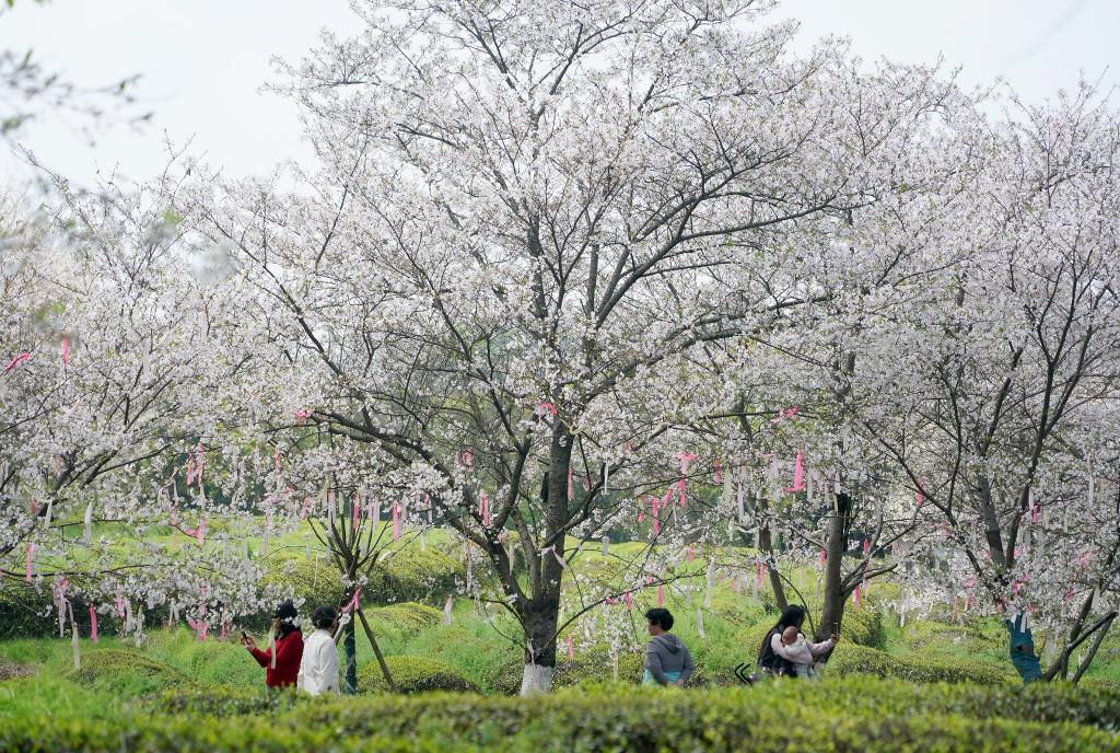 近日,江西省南昌县凤凰沟景区樱花进入盛花期。景区2000余亩樱花谷内,早樱、晚樱、迎春樱等20余个品种樱花次第绽放,春风拂面,花海连片,吸引不少游客前来赏花踏青。新华社记者 万象 摄