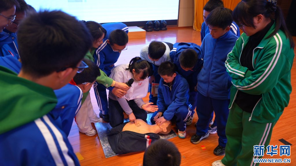 南昌市第一医院医生为学生讲解急救知识、心肺复苏操作。新华网发
