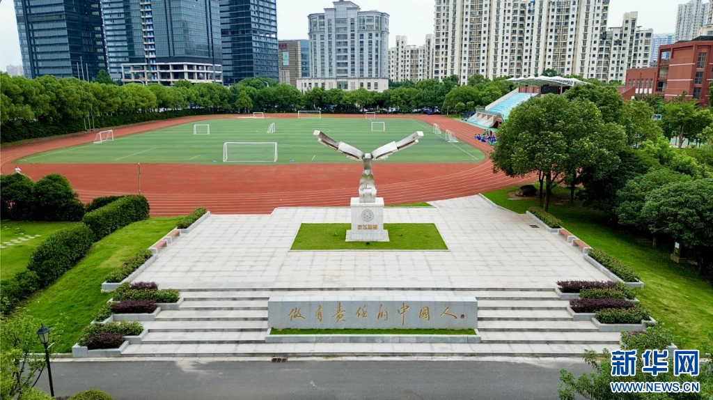 航拍江西师范大学附属中学滨江分校操场。新华网发