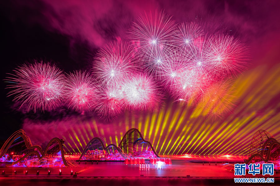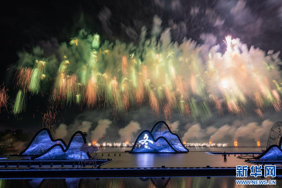 2023年江西省旅游产业发展大会萍水湖烟花文艺晚会现场。新华网发 汪立新 摄