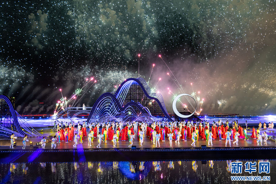 2023年江西省旅游产业发展大会萍水湖烟花文艺晚会现场。新华网发 马俊强 摄