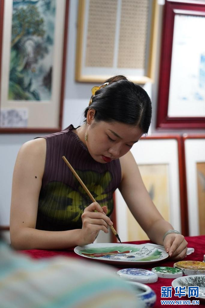 走进位于江西省赣州市章贡区的非遗客家瓷画传习所,学员们正在客家瓷画非遗传承人蒋洪亮的指导下学习绘制瓷画,零距离体验感受非遗艺术魅力。