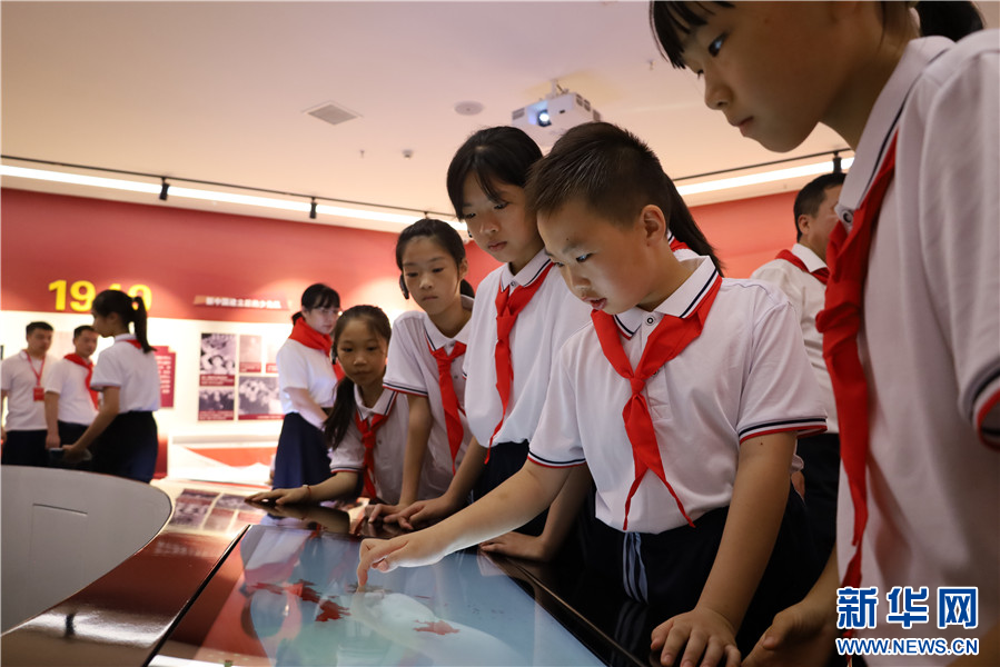 在中国少年儿童运动安源纪念馆,学员体验互动项目。新华网 王晓震 摄