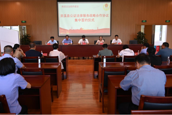 签约仪式上,资溪县司法局公证处与各乡镇人民政府、县直各单位签订了《公证法律服务战略合作协议》。