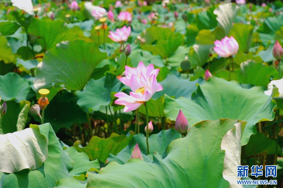 盛夏时节,江西省吉安市井冈山风景区的荷花竞相盛开。放眼望去,荷池里铺陈着一片片碧绿的荷叶,娇艳的荷花三三两两露出水面,凡步行之处,皆有莲香,吸引众多游人前来赏荷游玩。(谭茜予 实习生 宋雨蔓)