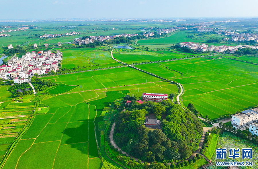 近日,走进江西省余干县信丰垦殖场新建村,农田广阔、阡陌纵横,红瓦农房与碧水蓝天相映成景,乡村美如画卷。