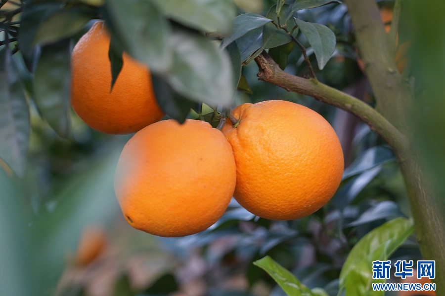 在赣州市信丰县西牛镇的一处果园内,色泽金黄的脐橙挂满枝头。新华网 王凯丰 摄