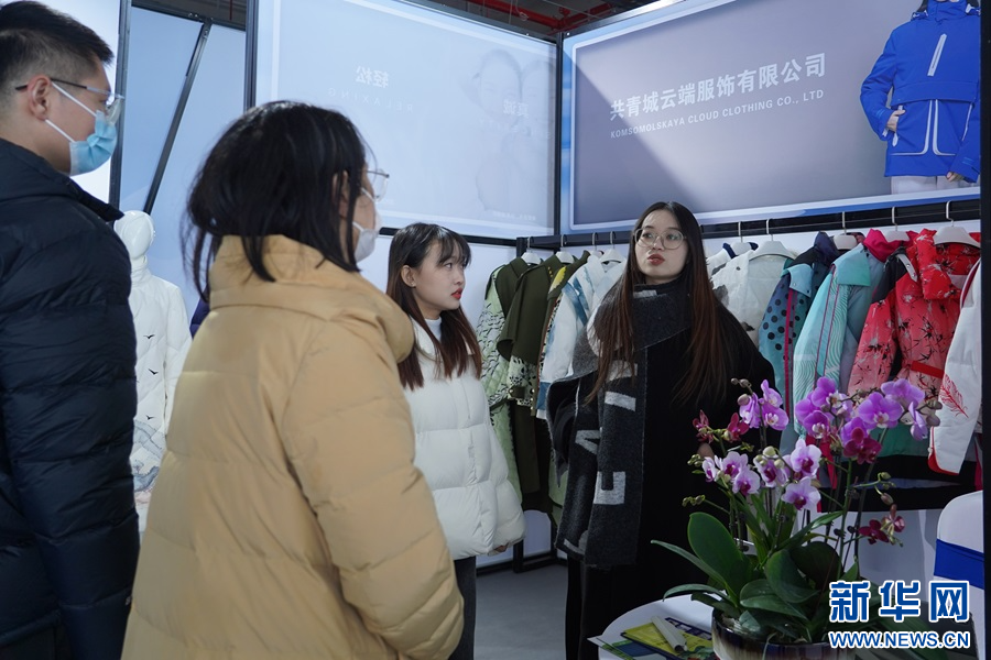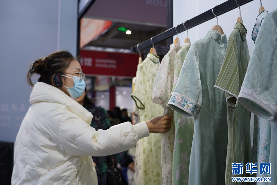 12月24日,参会客商在博览会现场挑选服装。新华网 王凯丰 摄