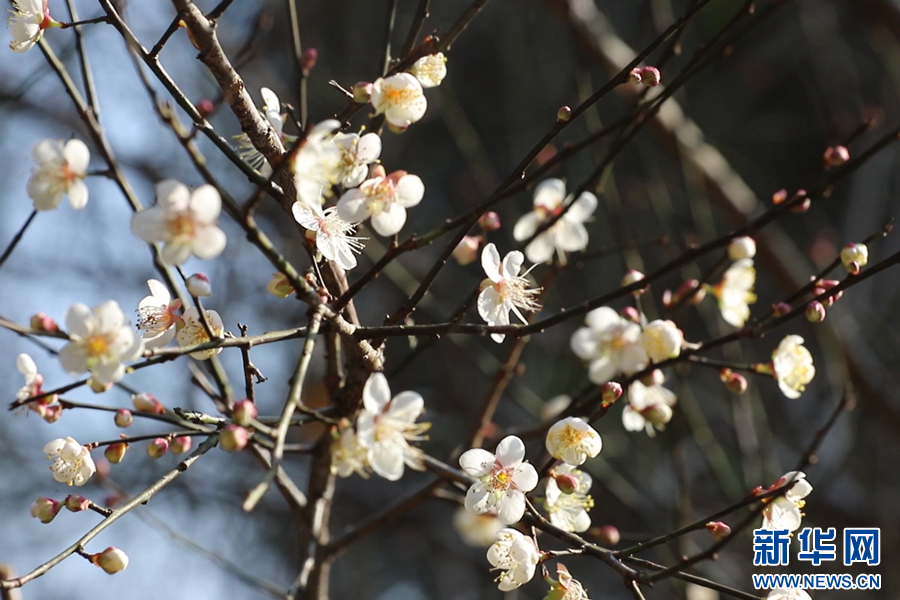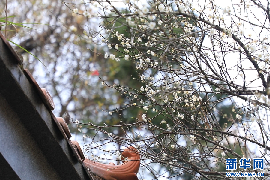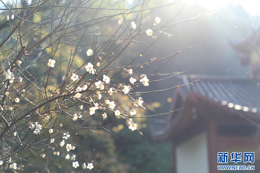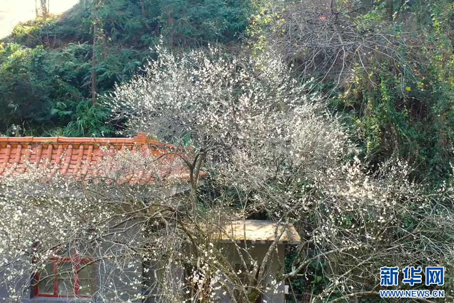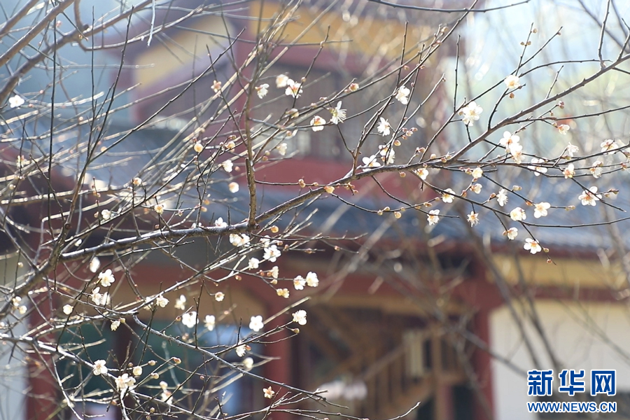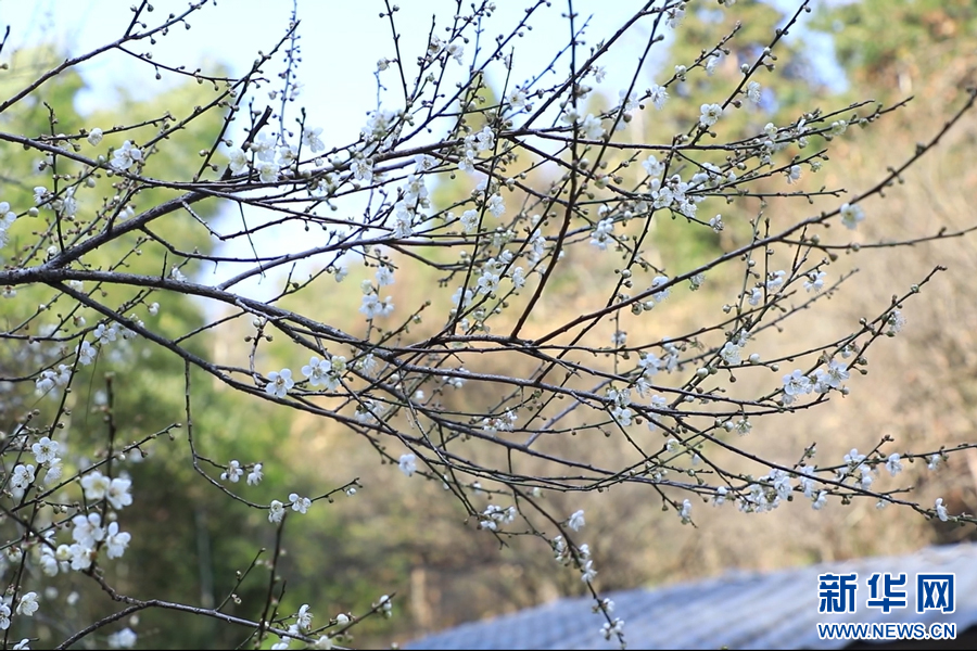 梅花次第绽放,为冬日的古驿道增添了一抹秀色。新华网发