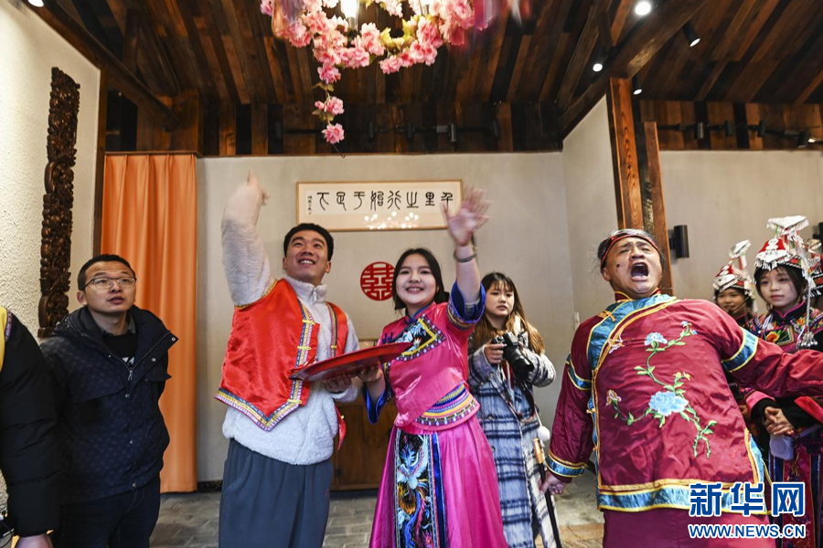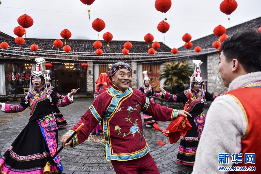 新春佳节临近,一场传统的畲族婚俗表演在江西省资溪县乌石镇热闹举行,一对畲汉“新人”扮演者将喜糖撒向游客。竹竿舞、山歌对唱、农家特色美食活动……来自草坪村、新月村的汉族和畲族村民,在欢乐祥和的氛围中共同迎接新春佳节的到来。(谭茜予 吴志贵)