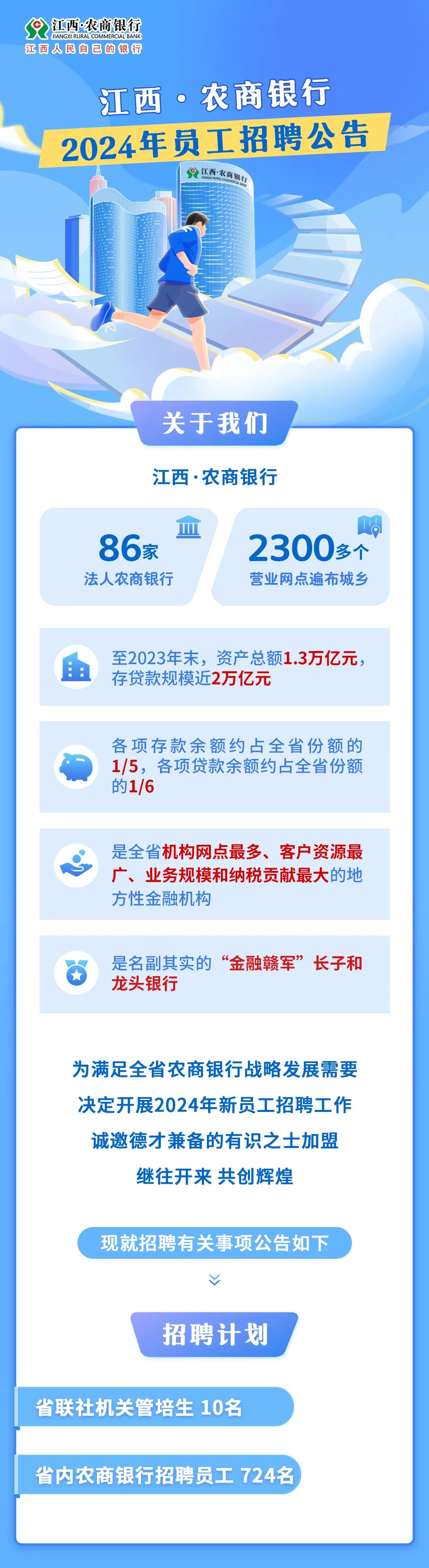 详细招聘公告请登录江西·农商银行网站(http://www.jxnxs.com)和江西人才服务网(www.jxrcfw.com)查看。