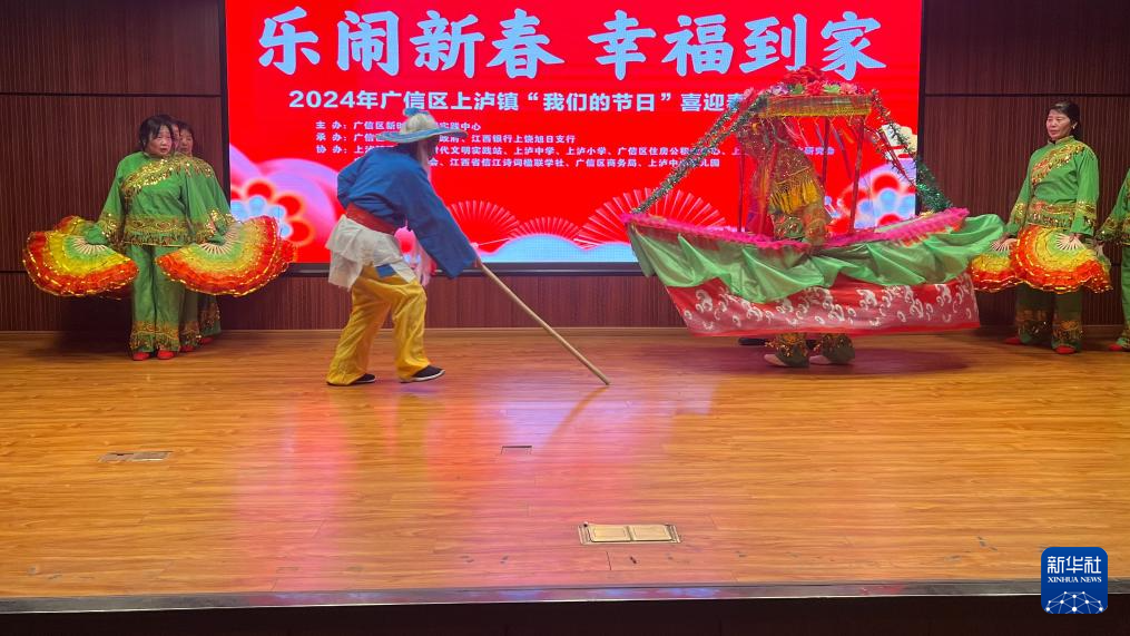 新华社南昌2月16日电(记者刘佳敏)简朴的舞台上,小船轻摇慢荡。身披彩纱的演员站立在船里,一旁的船夫“卖力”地撑着竹竿,犹如在水中行。随着音乐逐渐激昂,演员带着船灯不断回旋移动,如在急流中劈波斩浪,让观众仿佛身临其境。