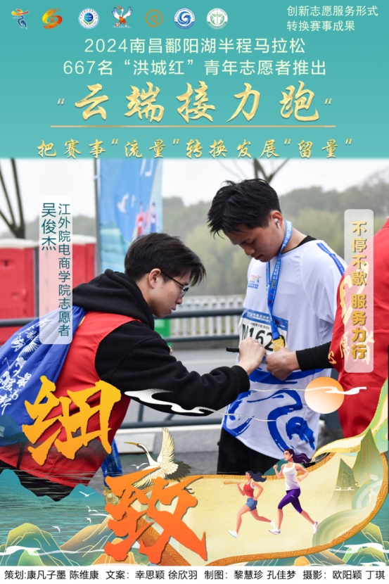 3月17日,2024南昌鄱阳湖半程马拉松在鲤鱼洲举行。南昌高新区团工委面向江西外语外贸职业学院电子商务学院、工商学院(旅游学院)定向招募“洪城红”青年志愿者,共吸引3657名青年学生报名,经过综合素质面试、志愿服务履历筛选、心理素质测试和志愿服务技能测试,按照赛事志愿者选拔要求,选拔出667名南昌高新区“洪城红”青年志愿者队伍。