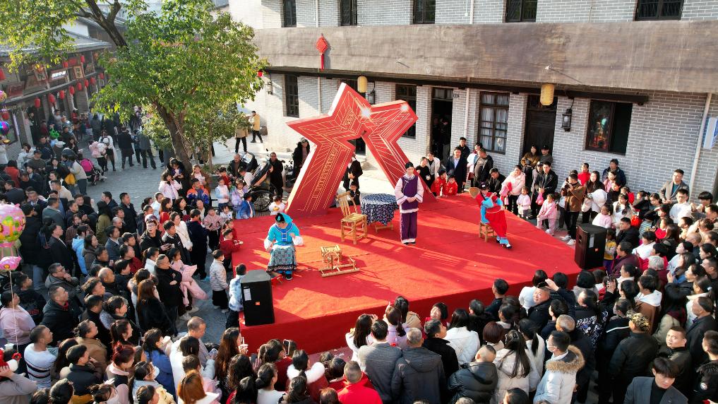 1月2日,瑞金象湖里文化创意街区上演采茶戏。新华社发