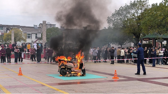 在现场,消防人员对电动车、小太阳等常见物品起火原因进行了详细讲解并进行了火灾模拟实操演练。同时,也向群众讲解了发生火灾时应如何冷静应对、正确报警以及如何扑救初期火灾、使用灭火器等消防安全知识。