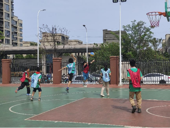 开幕式结束,六年级篮球班级联赛拉开帷幕。球场上,孩子们的身影活跃,他们或是灵巧地穿梭于对手之间,或是高高跃起,力争每一个篮板球。赛场边的家长和同学们的加油声此起彼伏,为球场上的小选手们注入了无穷的动力。每一次精准的投篮、每一次果断的抢断,都能引起一阵阵欢呼和掌声。