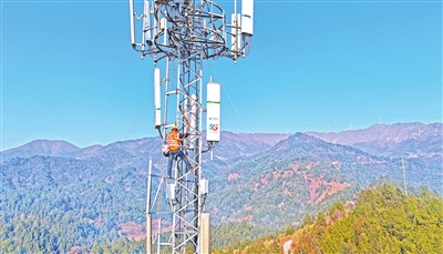 中国电信网络工程师在修水县崇山峻岭中架设5G基站