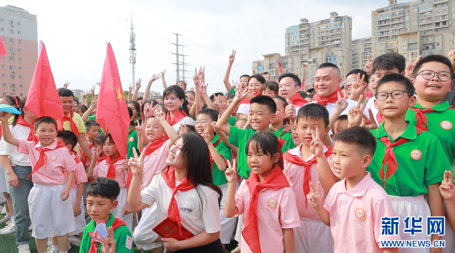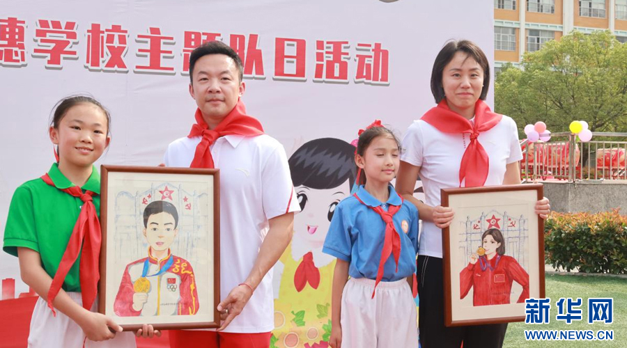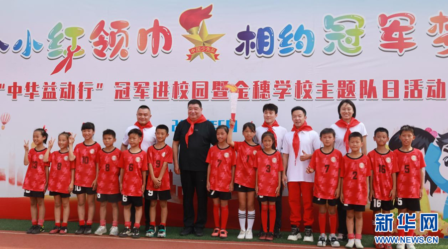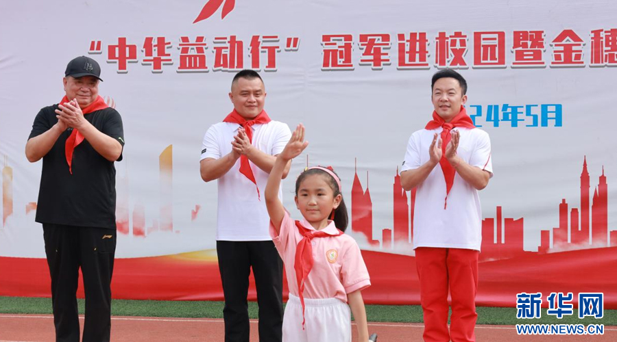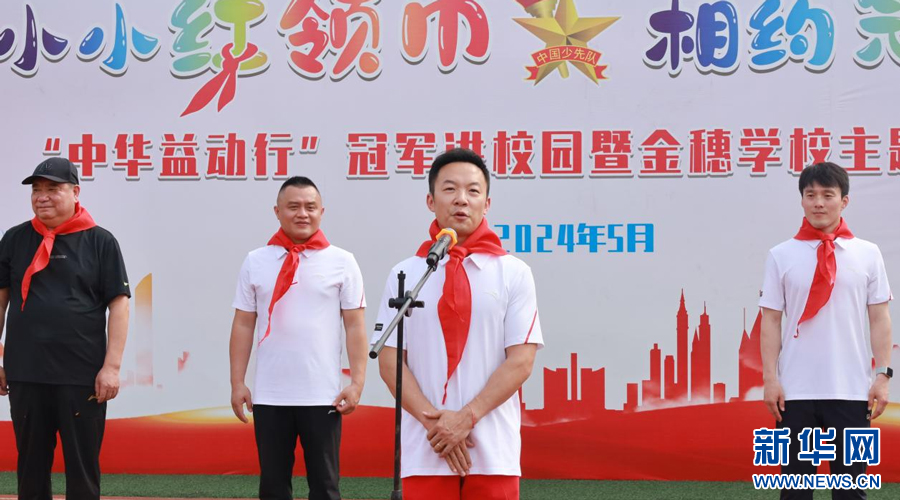 近日,江西瑞金金穗小学校园内洋溢着运动的活力与激情,“‘中华益动行’奥运冠军进校园”活动在这里举行。齐广璞、王义夫、彭勃、赵芸蕾、郭伟阳五位奥运冠军走进校园,参与了学校一年级少先队员的入队仪式。他们为新队员们系上红领巾,并鼓励新队员们要勇于挑战、敢于拼搏,为实现自己的梦想而努力奋斗。