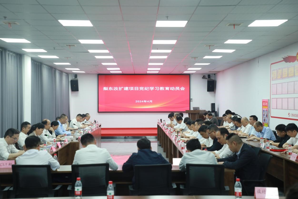 4月16日上午,梨东改扩建项目办召开党委会议,第一时间学习贯彻中央、省委部署,集团、项目公司工作要求,研究部署项目办党纪学习教育工作,项目办机关党支部及参建单位党组织也以党员大会的形式启动部署到位。