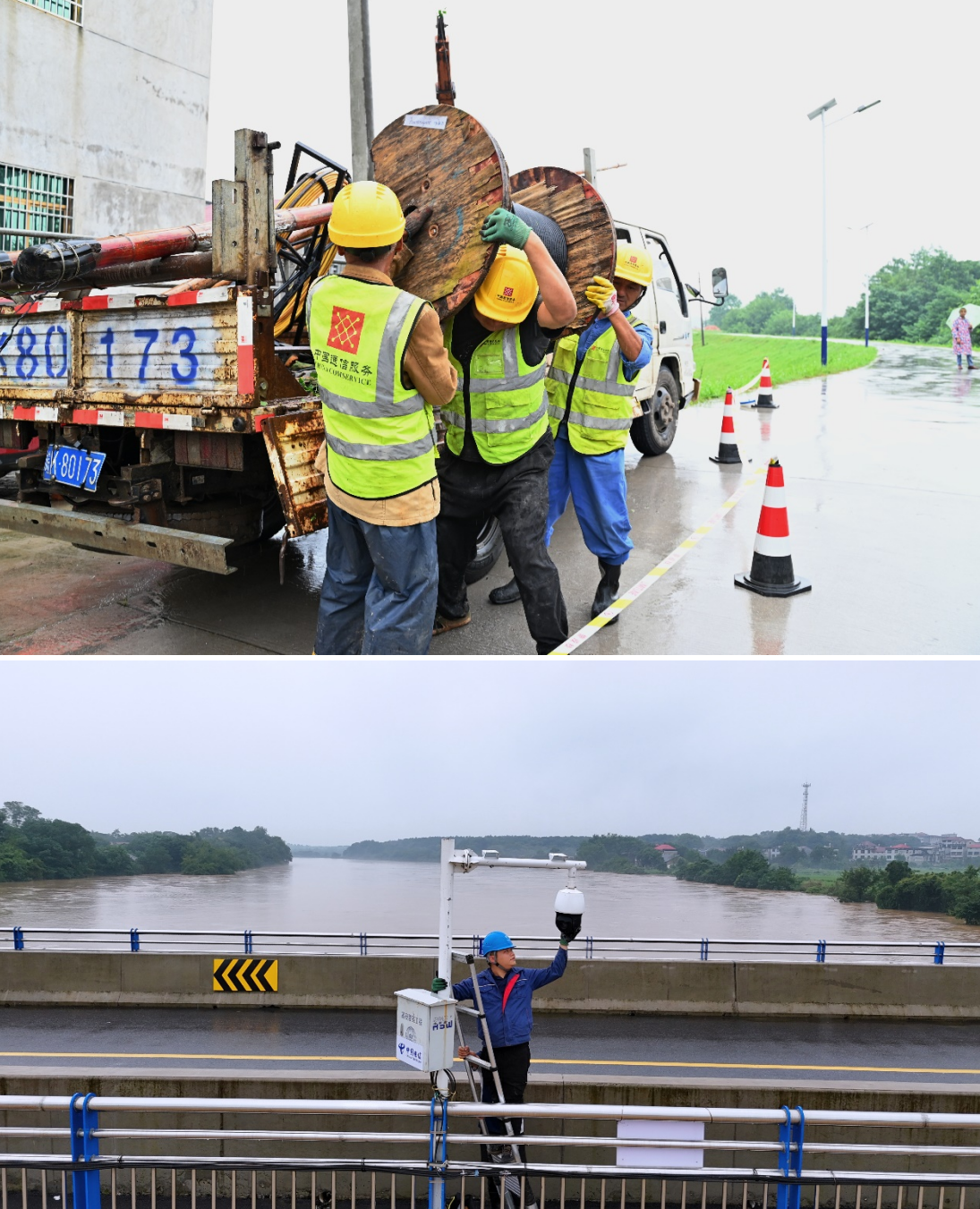 面对突发险情,中国电信江西公司迅速响应,启动应急预案,成立“映山红”通信抢险突击队赶赴受灾现场。队员们修复被洪水损毁的通信设施,同时检查维护桥面的视频监控设备,确保实时掌握洪水动态。为确保通信畅通,应急队员还启用卫星通信系统,并调配5G应急车辆和光缆抢修队伍进行支援。