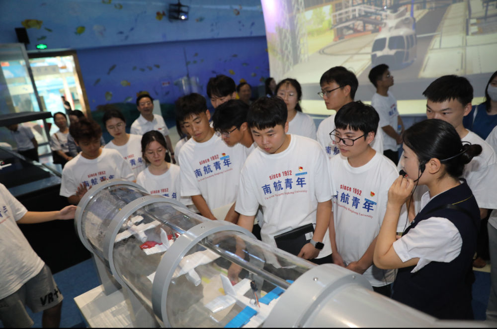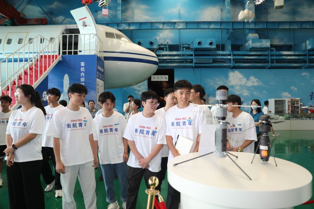 南昌航空大学实践队队员们在江西直升机科技馆参观。李言金摄