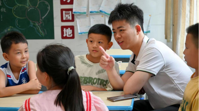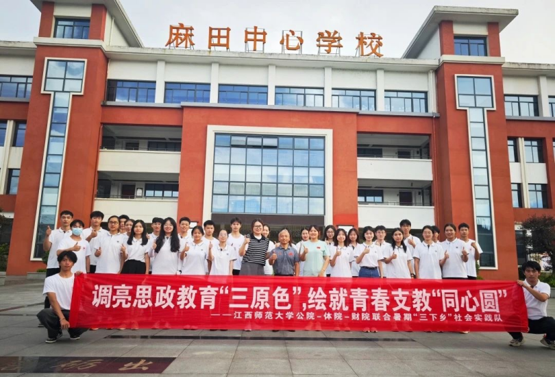 7月13日,“调亮思政教育三原色,绘就乡村振兴同心圆”江西师范大学公费师范生院、体育学院、财政金融学院三院联合暑假三下乡实践队在萍乡武功山风景名胜区麻田中心学校开展“青春三原色”爱心支教活动。队员们怀揣热情、以爱为笔、以心为墨,在红色、绿色、古色课堂上传授知识、传播文化、传递情谊,为孩子们点亮前行的灯塔。