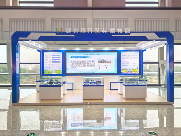 据了解,该展厅位于高铁西站二楼候车厅核心区域,不仅设有LED屏幕展示赣州经开区专精特新企业风采,还设有展柜展示优质企业产品,生动展示园区全貌,为赣州经开区企业“跑市场、拓订单”提供了又一靓丽窗口。
