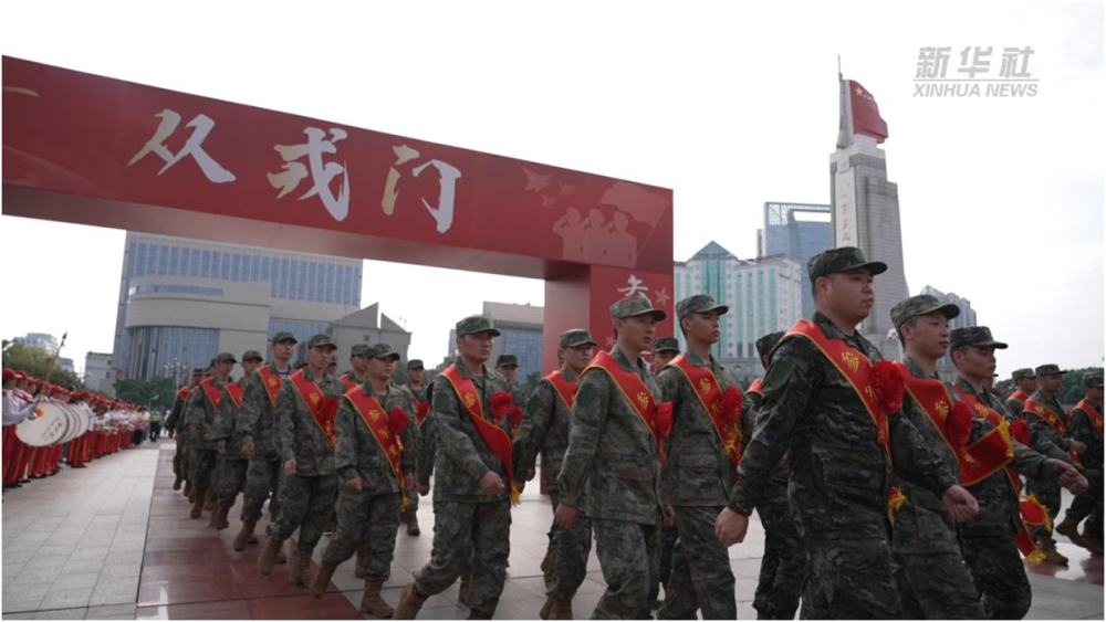 9月18日,“红土地吹响出征号,英雄城走出英雄兵”2024年下半年江西省入伍新兵欢送仪式在南昌市八一广场举行。来自南昌市550名入伍新兵代表身披绶带、胸戴大红花,带着江西父老乡亲的殷切嘱托,即将迈入军营。
