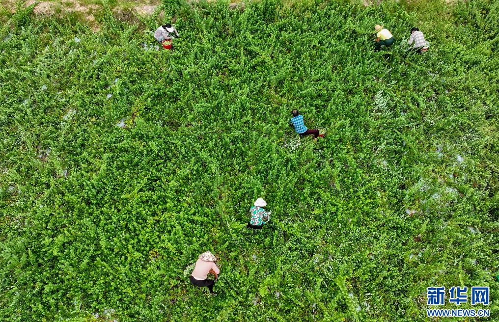 近日,在江西省抚州市乐安县大马头乡龙虎岭村中草药种植基地,农户正在采收蔓荆子。新华网发 黄煜 摄