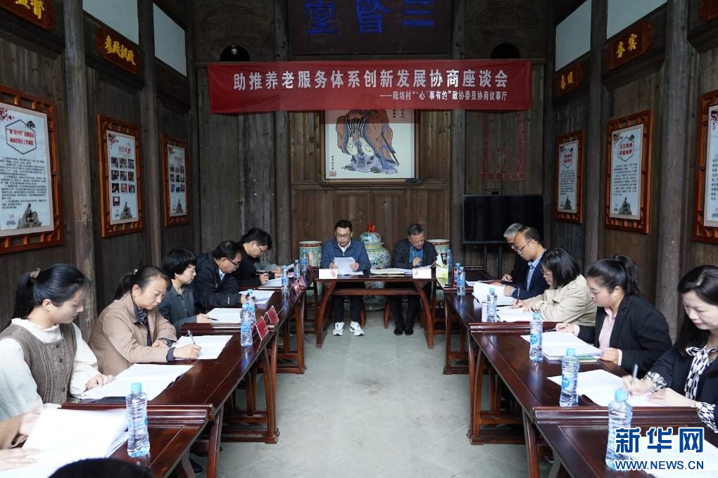 11月1日,在位于江西省金溪县陆坊村槐堂书屋,“心”事有约政协委员协商议事厅内,助推养老体系创新发展协商座谈会正在举行。政协委员与金溪县民政局、卫健委、教体局、医保局、中医院等相关部门人员齐聚,就金溪县养老服务体系建设情况调研报告提出意见建议,并交流协商如何推进金溪县养老体系创新发展。