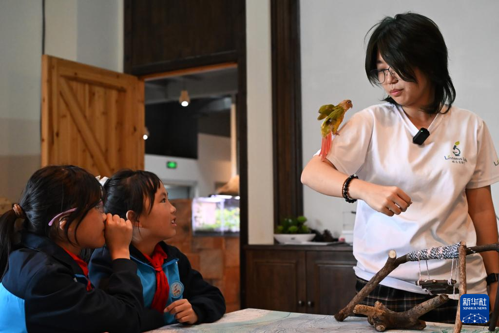 在江西省上饶市婺源县,一群专注于自然教育科普的“90后”科研人员,在当地政府的支持下为乡村留守儿童提供免费科普教育课程,让孩子们在快乐中学习,在学习中成长。2018年至今,他们已在婺源本地累计开展了700多场公益科普活动。 新华社发