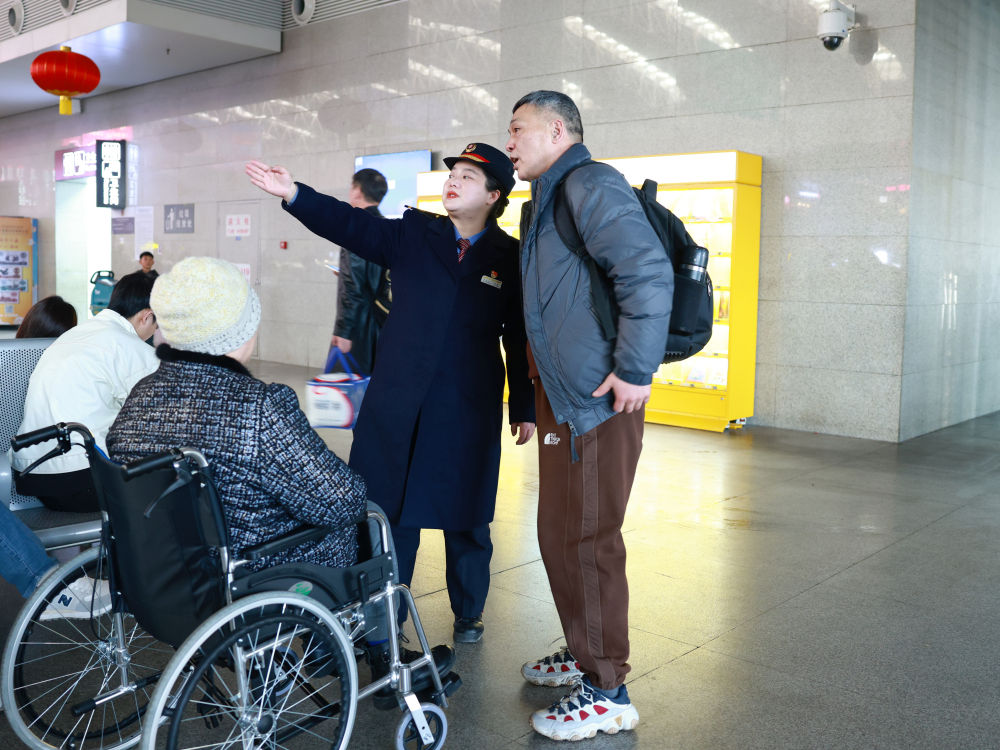 15时27分,李军根据12306线上预约信息,准时来到T305次列车5号车厢门口。行动不便的旅客王先生在李军的帮扶下顺利下车出站、转乘公交车。