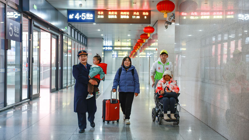17时,在候车大厅外,一位年迈的阿姨独自带着2岁的孩子,显得有些手足无措。李军主动上前询问车次信息,并耐心照看小孩,帮助缓解旅客紧张情绪。开车前10分钟,李军抱起孩子,领着阿姨一路走进车厢。隔着车窗,坐稳的阿姨不停挥手、连声道谢。