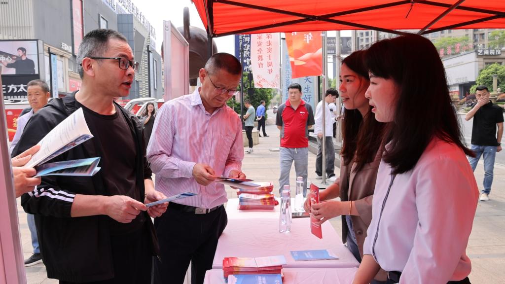 这是“总体国家安全观进万家”集中宣传活动启动仪式现场,工作人员正在和观众交流。