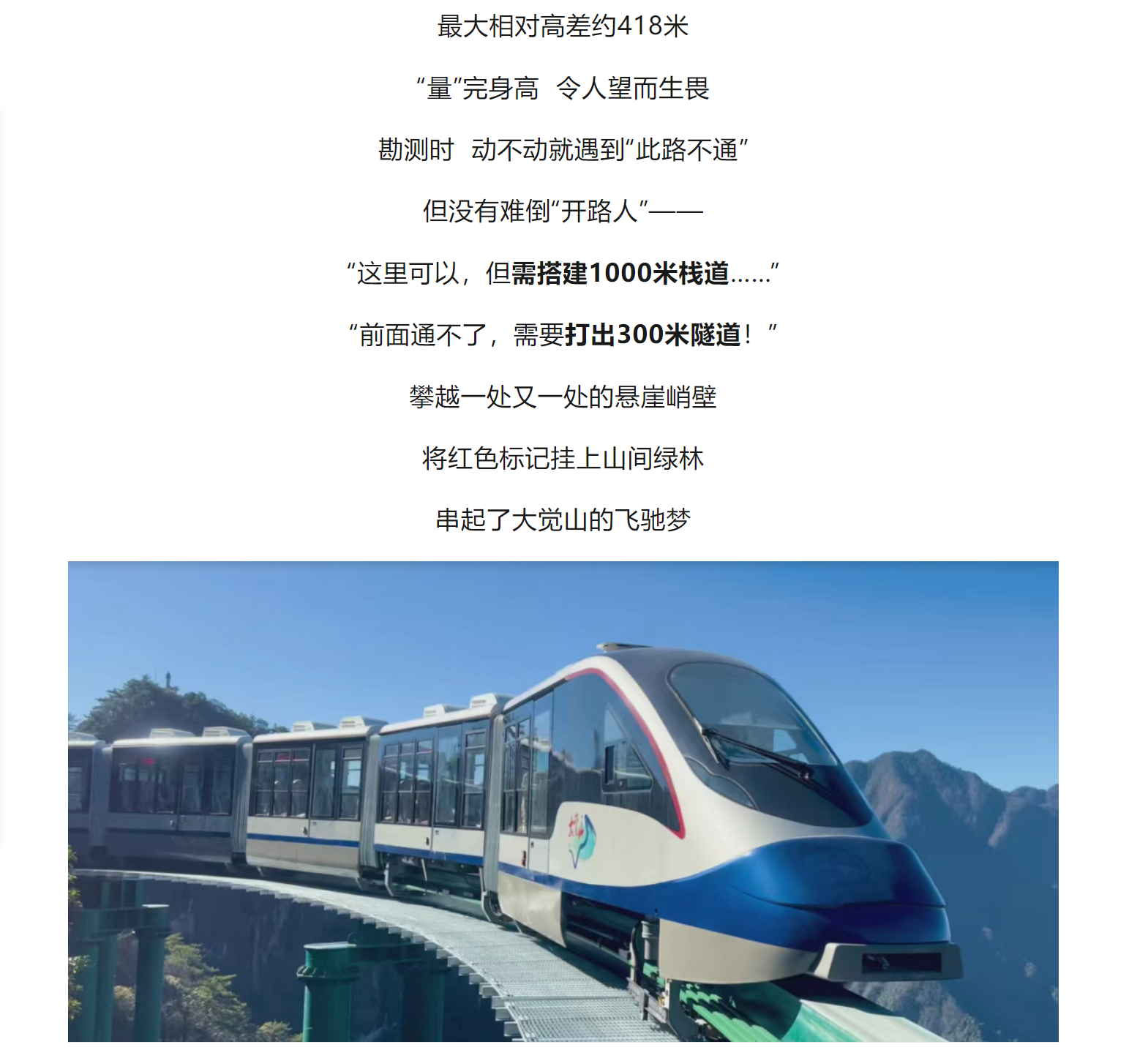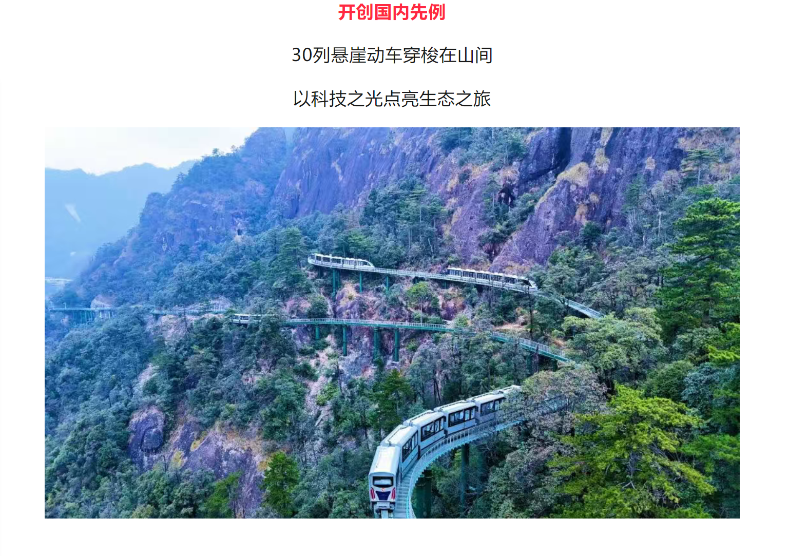 一列白色列车正“贴”着悬崖行驶
