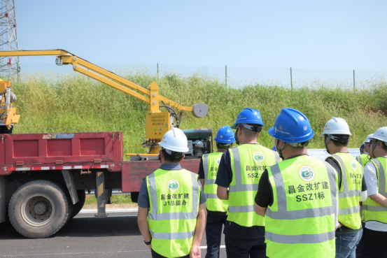 为深入学习交流工程施工先进技术,推动昌金改扩建项目全线波形护栏安装质量提升,7月6日,昌金改扩建SSZ1标成功举办波形护栏共融臂智能安装现场观摩会。此次观摩会聚集了各标段施工单位、监理单位、建设单位等众多专家、技术人员,旨在通过展示波形护栏共融机械臂智能安装新技术,提升全线波形护栏安装线形质量、施工效率。