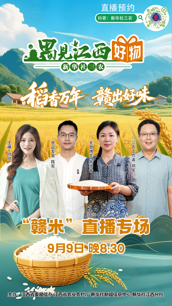 9月9日晚,让我们相约新华社三农“遇见江西好物”直播间,共品一碗江西好饭,共话一场稻香之旅。(赵瑞明)