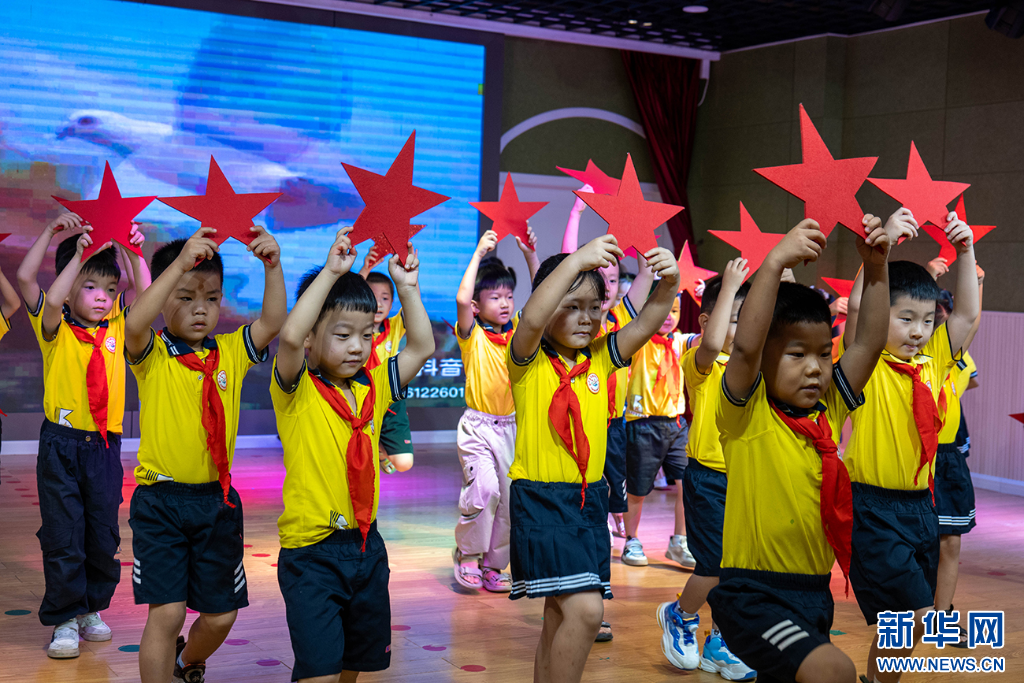 小朋友正在表演舞蹈《我和我的祖国》。新华网发 韩海建 摄