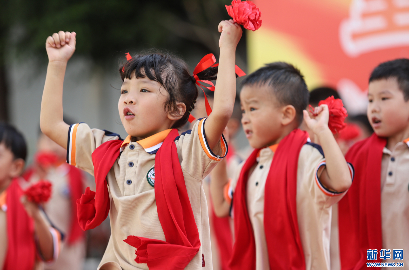 余干县第一幼儿园小朋友表演节目《我心中的那抹红》。新华网发 韩海建 摄