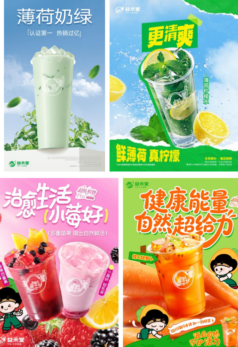 在产品层面,益禾堂不仅将明星单品打造为现象级爆款,更通过系列化拓展构建出强大的产品矩阵。薄荷系列作为品牌标志性品类,已成功演进至3.0阶段,新推出的“薄荷柚轻乳茶”与“薄荷柠檬水”延续了其鲜爽沁凉的特质,持续赢得市场青睐。同时,益禾堂敏锐把握健康消费趋势,创新推出超级植物Pro系列,一经上市便迅速赢得市场热烈反响,消费端热度持续攀升。