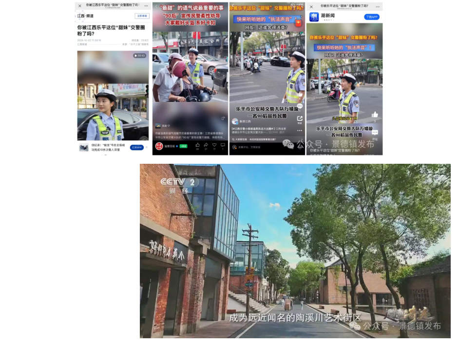 "鸡排哥"正能量话题全网曝光超10亿次,更多游客关注景德镇。乐平交警柔性执法内容阅读量超3.5亿人次,央视《遗迹有奇迹》纪录片观看量超1800万人次,城市美誉度大幅提升。通过官方微信公众号、抖音、微博、视频号等陆续推出国庆中秋假期活动内容图文和视频,内容涵盖假期活动预告、景区实时动态、文旅消费提示、精品线路推荐、“必吃榜”“必玩榜”“必逛榜”“必看榜”、传统文化解读、游客暖心故事等多个方面,新媒体传播有效激发游客到访意愿,推动景德镇从"现象级网红"向"可持续长红"转型升级。