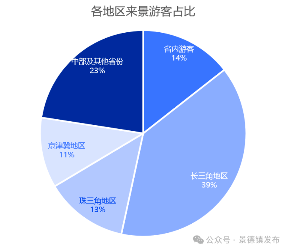 经初步统计,2025年10月1日至8日,景德镇市累计接待游客逾900万人次,同比增长8.75%;实现国内旅游花费超110亿,同比增长7.05%,人均花费1260元。从地域分布来看,省内游客占比14.4%;省外游客占比85.6%,其中长三角贡献45.5%省外客源,珠三角15.2%、京津冀13%,中部地区及其他省份26.3%,已形成层次清晰、梯度互补的三层辐射格局,市场潜力持续释放。